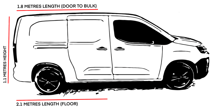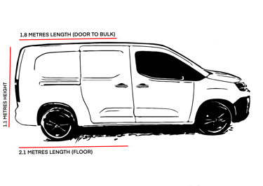 This page is for guidance purposes only to provide you with our vans dimensions and to give an idea on the size and lengths of cargo we are capable of transporting. If you are unsure please feel free to drop us a quick message and we will be more than happy to help.