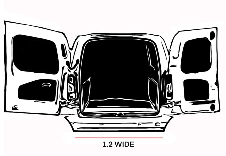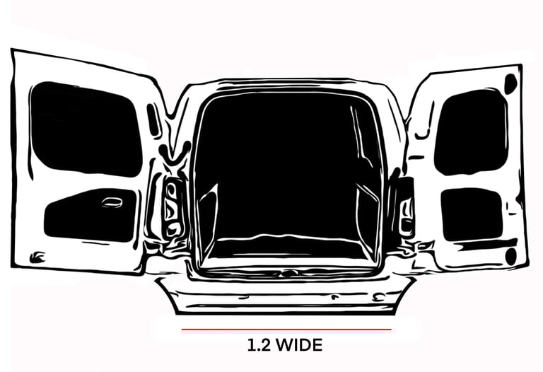 Height between van floor and roof is 1100mm Width between the back doors is 1210mm